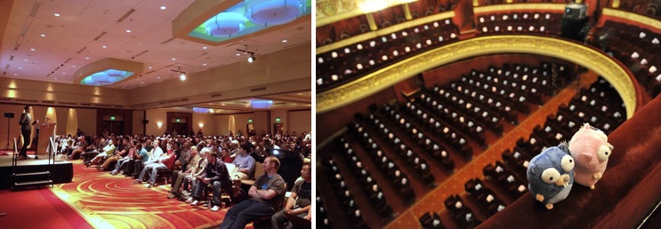 Where can those gophers be found? They are at the many Go events that are popping up around the world. This year we saw several dedicated Go conferences: the inaugural GopherCon and dotGo conferences in Denver and Paris, the Go DevRoom at FOSDEM and two more instances of the biannual GoCon conference in Tokyo. At each event, gophers from around the globe eagerly presented their Go projects. For the Go team, it is very satisfying to meet so many programmers that share our vision and excitement.